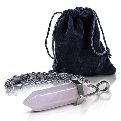 Kwarc różowy – zawieszka z łańcuszkiem w woreczku