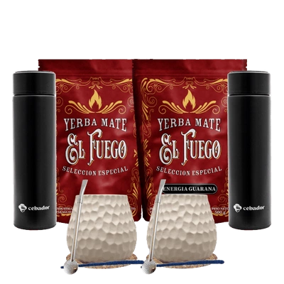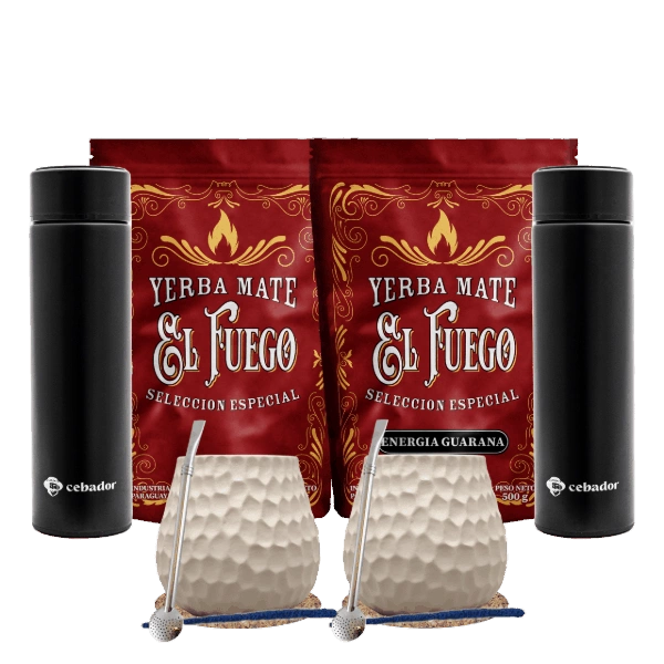 Zestaw Yerba Mate dla dwojga: El Fuego 2x500g + 2x Termos LED + 2x Matero + 2x Bombilla