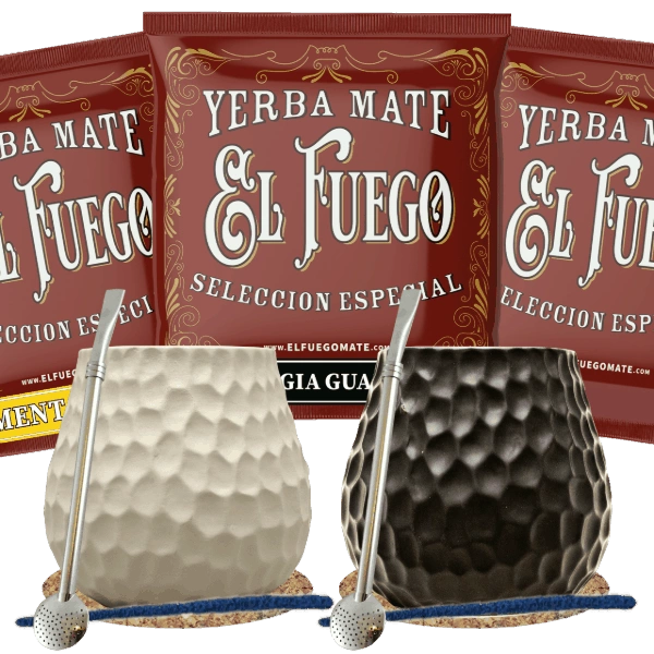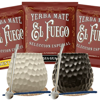 Zestaw Yerba Mate dla dwojga: próbki El Fuego 3x50g + 2x Matero + 2x Bombilla