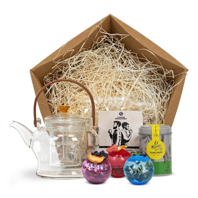 Zestaw prezentowy: herbata, bomby herbaciane, słodycze i akcesoria do herbaty