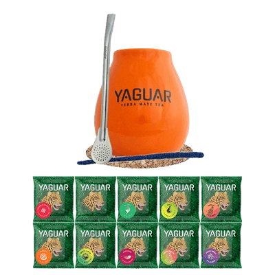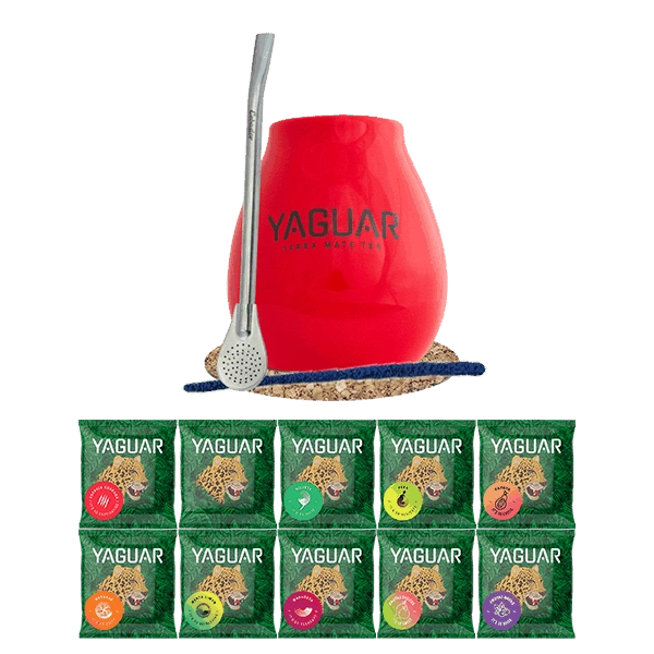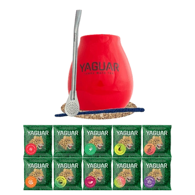 Zestaw Yerba Mate: próbki Yaguar 10x50g + Matero + Bombilla