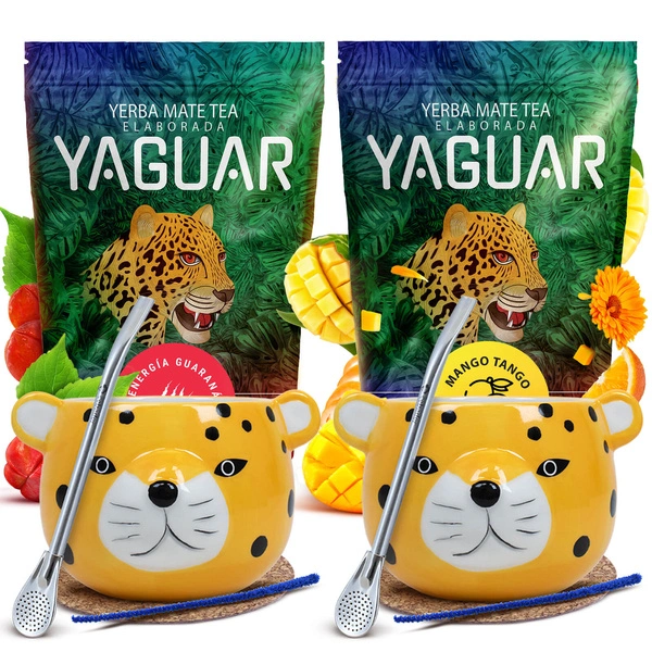 Zestaw Yerba Mate dla Dwojga: Yaguar 2x500g + 2x Matero + 2x Bombilla
