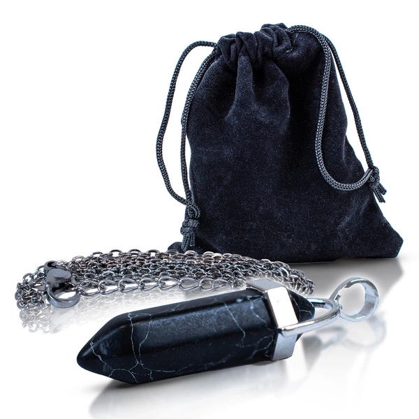 - Zawieszka z czarnego turkusu to amulet o wyjątkowym wyglądzie i symbolice. Głęboka czerń z jasnymi żyłkami symbolizuje wewnętrzną siłę, ochronę i intuicję. Idealna do noszenia na co dzień i podczas ezoterycznych rytuałów.