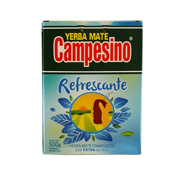 - Yerba Mate Campesino Refrescante 500 g 0.5 kg to orzeźwiająca kompozycja yerba mate z liśćmi mięty oraz olejkiem miętowym. Świetnie pobudza i orzeźwia.